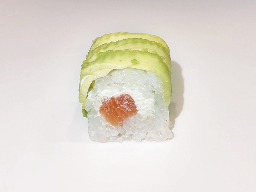 Salmone, philadelphia, avvolto da avocado, salsa teriyaki (senza alga)