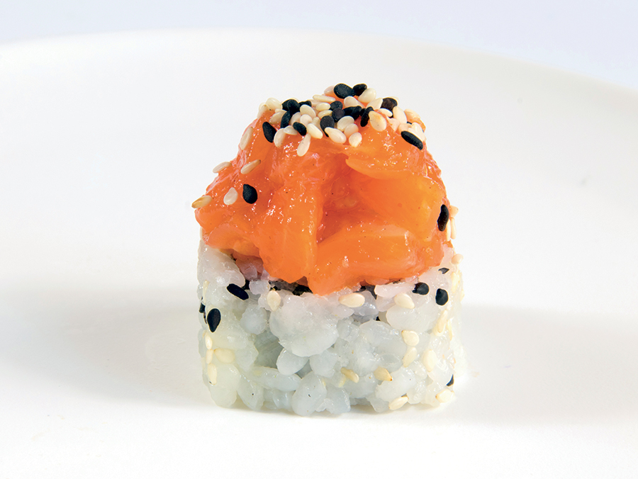 10 nighiri con riso venere al salmone Allergeni / Allergens: pesce
